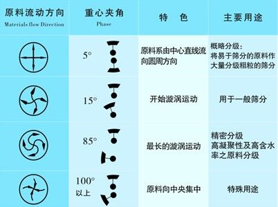 三次元旋振篩由直立式電機作激振源,電機上、下兩端安裝有偏心重錘,將電機的旋轉(zhuǎn)運動轉(zhuǎn)變?yōu)樗?、垂直、傾斜的三次元運動,再把這個運動傳遞給篩面。調(diào)節(jié)上、下兩端的相位角,可以改變物料在篩面上的運動軌跡。